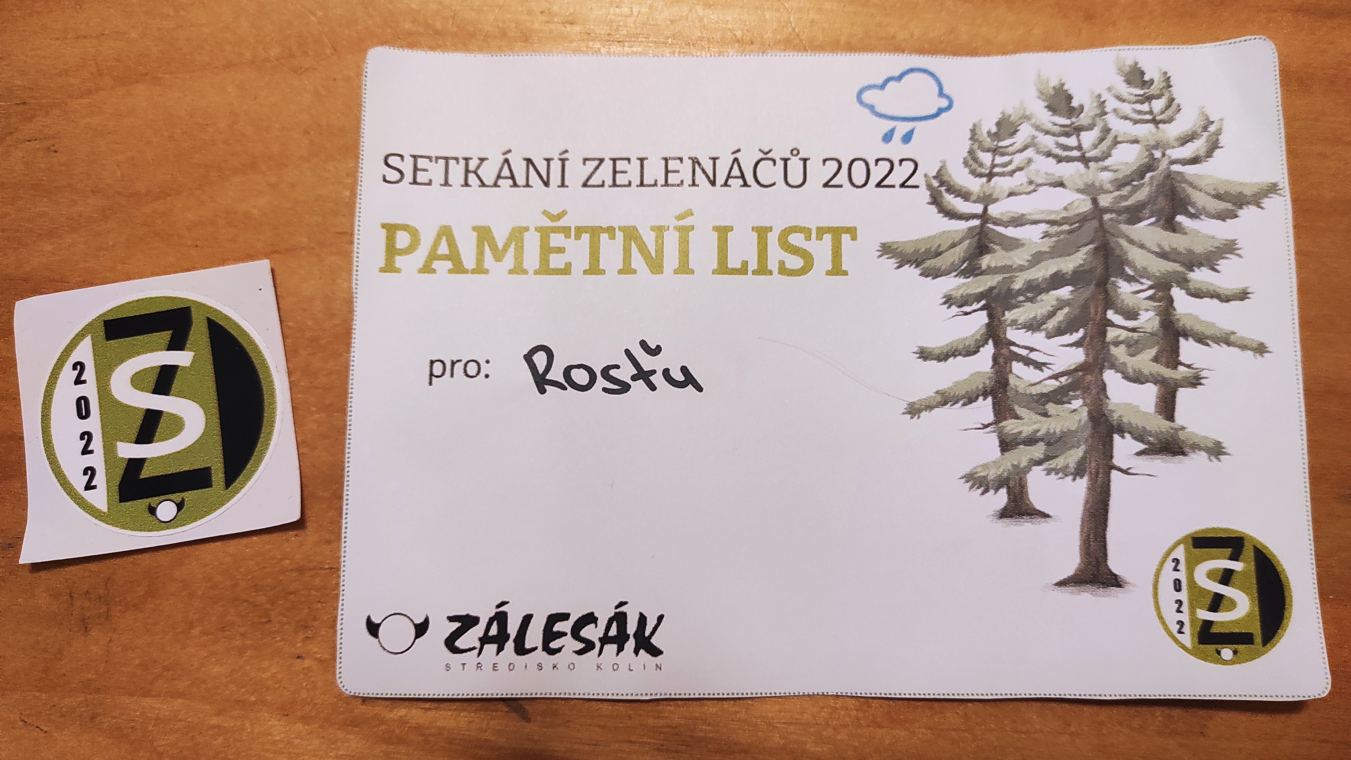 Setkání zelenáčů se koná ve dnech  16. - 18. 9. 2022 tentokrát na tábořišti kolínských zálesáku v Chroustkově. Je to bezva akce, kde uvidíte zálesáckou základnu jiného střediska a poznáte jiné zálesáky. Spaní ve vlastních stanech (sbalit: stan, spacák, karimatku, baterku, teplé oblečení, pevnou i sportovní obuv). Domluvte se, s kým budete spát ve stanu, náčelníci na to na schůzkách dohlédnou. Jídlo bude zajištěno (sbalit: ešus, lžíci, hrneček). Další povinnou výbavou je zálesácká košile, šátek, turbánek a střediskové tričko. Pokud potřebujete vědět víc, ptejte se oddílových náčelníků nebo volejte Pavlovi (605 875 0178). Náčelníci jednotlivých oddílů vám podají detailní informace.