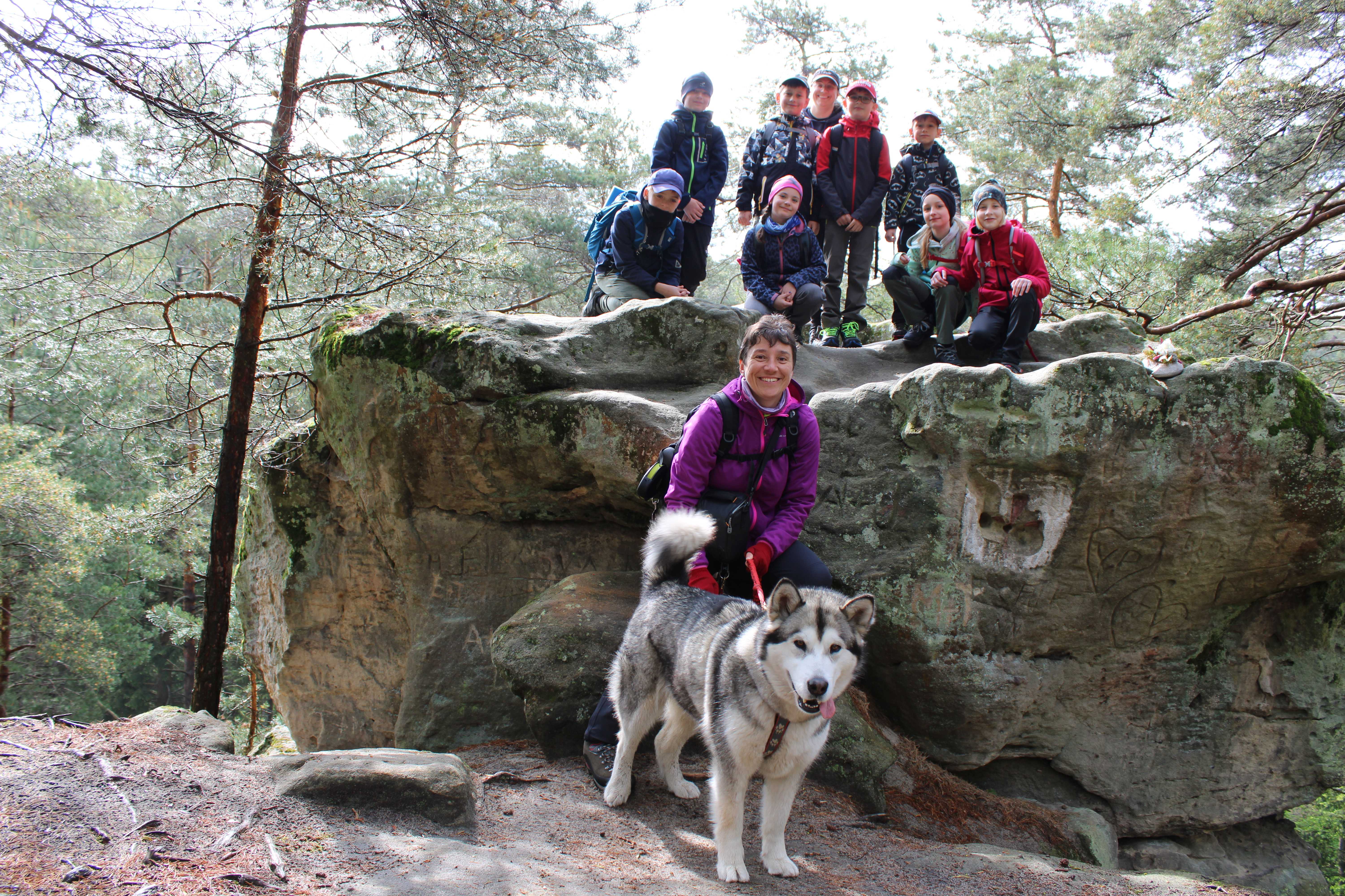 V sobotu ráno jsme se všichni nalodili do oddílového autobusu na Masarykově náměstí. Cíl, doposud všem neznámý, jsme rodičům prozradili až za nepřítomnosti dětí, kteří pohodlně seděly v autě. V Boru u Skutče, na startovní čáře vysprejované na silnici, jsme Kobry seznámili s plánem trasy, místem oběda i možných variant na zkrácení trasy, kdyby nás zastihla bouřka nebo silný déšť. Pod bedlivou kontrolou oddílového maskota, malamutky Betty, jsme se vydali do centra Toulovcových Maštalí na pískovcové skály. Cestou jsme často brodili místní potůčky, přelézali popadané stromy, bavili se a hráli různé hry. Ve skalním městečku se všem moc líbilo, hlavně tunel, který si někteří vícekrát prolezli. Blížil se čas oběda, stále víc se ozývalo: „Mám hlad, kdy už budeme opékat“. Ve Vranicích, vedle místní hospůdky, jsme požádali paní hospodskou o poskytnutí azylu na vedlejším místě s ohništěm. S velkými nesnázemi jsme rozdělali oheň (na jednu sirku s dvanácti pokusy), opekli si buřtíky a následně i maršmelouny J Všichni se občerstvili, utratili pár kaček za šmoulí Zonku. Přestávku jsme vystřídali pořádnou zábavou. Nejdříve jeden kůň postupně převážel všechny své jezdce na fiktivní druhý břeh vody. Pak se nejlehčí člen stal těžkým břemenem, který dostal za úkol nést se od jednoho k druhému, aniž by při přestupu šlápl na zem. Vyvrcholením se staly ocásky. Začali jsme soubojem jednotlivců a přešli na kolektivní bitvu mezi dvěma skupinami. Střety byly nervy drásající s nedohledným koncem, protože se do hry stále vraceli ti, kteří už neměli ocásek a to díky těm, kteří ho pro změnu ukořistili soupeři. Při zápasech jsme se všichni velice pobavili. Do cíle naší výpravy nám zbývaly už jen 2 kilometry, které jsme šli poklidným tempem. Pod Dudychovou jeskyní se někteří kluci vyřádili při šiškové válce proti holkám, ostatní si hráli u potůčku nebo v lese. Poslední úsek cesty jsme lezli po čtyřech do prudkého kopce a u parkoviště si za odměnu mohli koupit zmrzlinu. Celý den nám počasí přálo. Pláštěnky jsme nepotřebovali, což byl úspěch, protože jsme na většině výprav vždy zmokli. Zapsala Alča