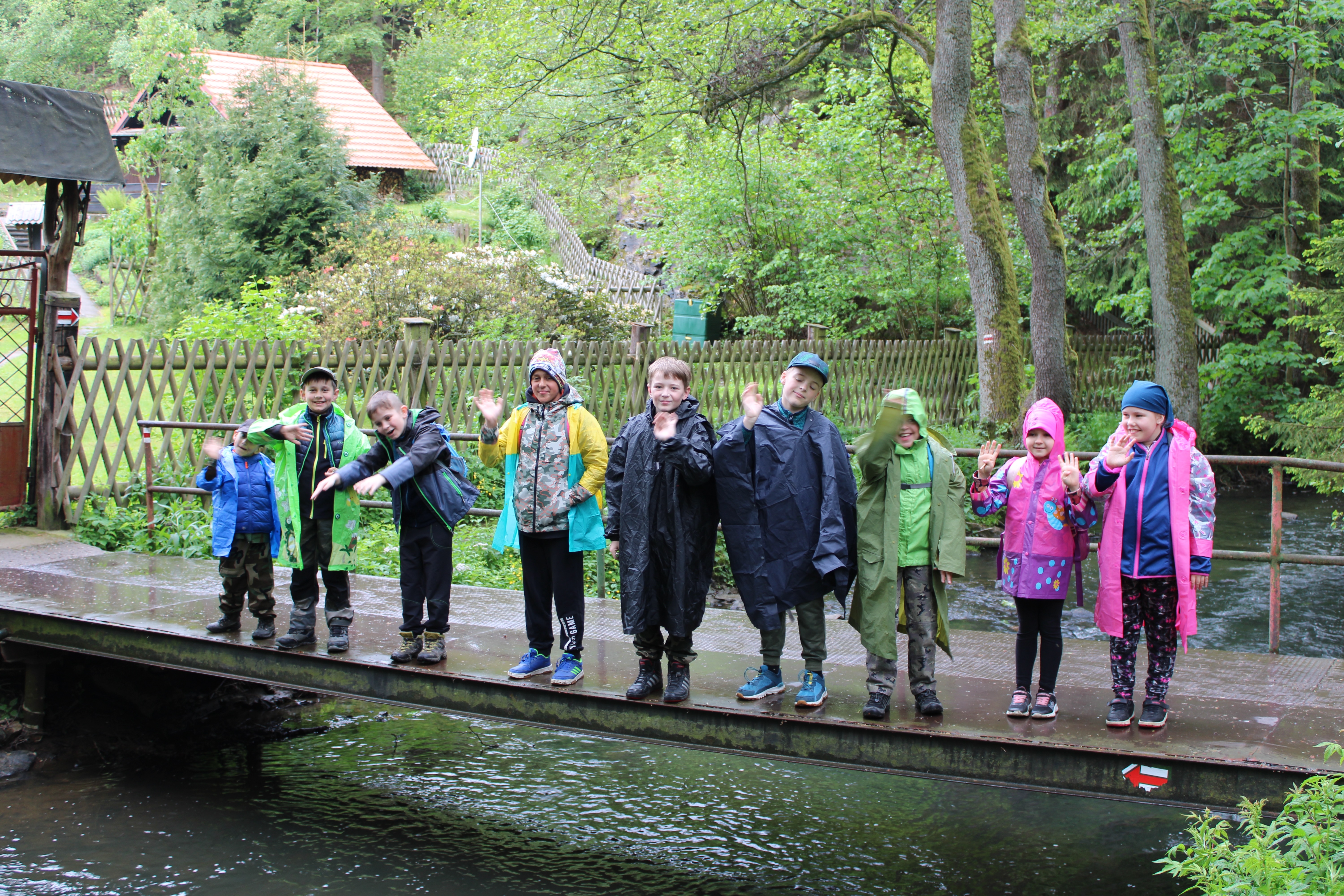 V sobotu 18. května jsme se sešli v ranních hodinách na vlakovém nádraží v Chrudimi. Náročnou a zdlouhavou cestu vlakem všichni bez újmy přežili. Bílek, vystupovat!!! Sotva jsme vystrčili nos z vlaku, začal trénink v oblékání, následně i ve svlékání, si pláštěnek. Celou procházku údolím jsme započali obležením místního kiosku se suvenýry. O kousek dál svlékáme pláštěnky, neprší, nelije ani nemrholí. Podešli jsme železnici a už to začalo. Cedule nás upozornila na menší překážky na trase způsobené kůrovcem. My, náčelníci, máme toto údolí v paměti zaryté jako krásně zelené údolí s šumící řekou a cestičkou klikatící se podél břehu. Šup zpět do reality. Všude pokácené stromy, přes cestu, přes řeku, ve stráni … Několika stromů jsme využili a potrénovali dovednosti Kober, jak umí přecházet kládu přes řeku tam a po další kládě o několik pár metrů dál zpět. Ondra s Tondou cestou neustále rybařili, nahazovali prut vytvořený z vlastních věcí. Po druhé se oblékáme do pláštěnek. Neprší, mírně lije. Naštěstí přeháňka přešla velice rychle a my pokračujeme k dalšímu úkolu. Sprint kolem stromu, ke značce a do kopce do cíle. Na mokrých kořenech všichni bravurně zvládli zadaný úkol. Pokračujeme dál, kape už jen ze stromů. V ohybu Doubravy jsme zahlédli krásné ohniště u skály. Má to jeden háček, je to na druhém břehu. Naštěstí je poblíž pár popadaných stromů, které nám udělali krásný přechod. Obsadili jsme ohniště, připravili si dřevo a opekli, co se dalo. Buřtíky, maršmelouny, klacíky či chleby. S nacpanými bříšky nás trochu začal hnát nejen čas, ale i hřmění. Místo her a soutěží si znovu oblékáme pláštěnky, i když jen na krátko. Na vykácené pasece jsme obsadili pařezy a na chvíli nechali odpočinout nohy. Chůzi jsme vystřídali v běh. Několik kol hry „Škatulata, batulata, hýbejte se!“ nabila energií všechny do další cesty. U skautské základny poblíž Chotěboře jsme uviděli propustek. První začal přemlouvat a žadonit, že musíme prolézt trubkou pod silnicí. Jeden za druhým jako housata podcházeli všichni členové naší výpravy trubkou. K rychlejšímu tempu nás nikdo nemusel pobízet, o to se postaralo hřmění s prudkým lijákem. Doběhli jsme pod strom a znovu si oblékáme pláštěnky. Někteří nechápavě koukají, než jim dojde, že prší. Poslední úsek cesty už nikdo neřešil mokrou trávu, kalužiny nebo bláto, každý měl na sobě něco mokrého. Kvůli dešti jsme si po cestě nemohli zahrát víc her, proto jsme si za odměnu v Chotěboři dali lehké občerstvení završené v cukrárně. Cesta autobusem rychle utekla a rodiče nám nemohli uvěřit, že nám skoro celý den propršelo.